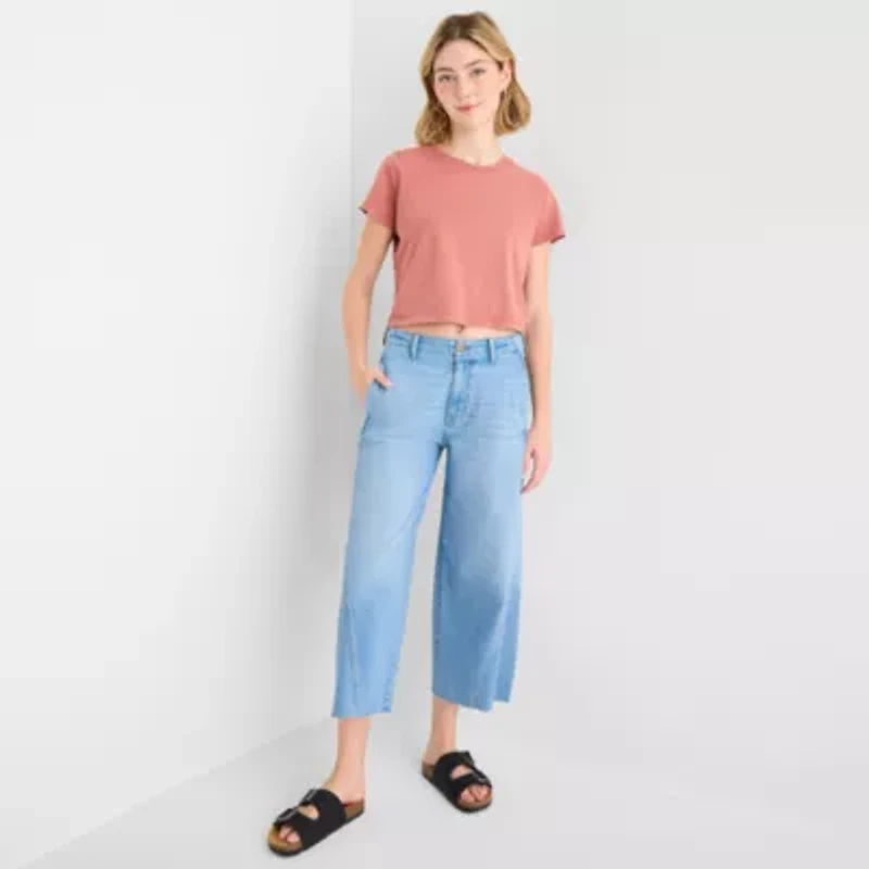 a.n.a Womens High Rise Frayed Hem Cropped Jean