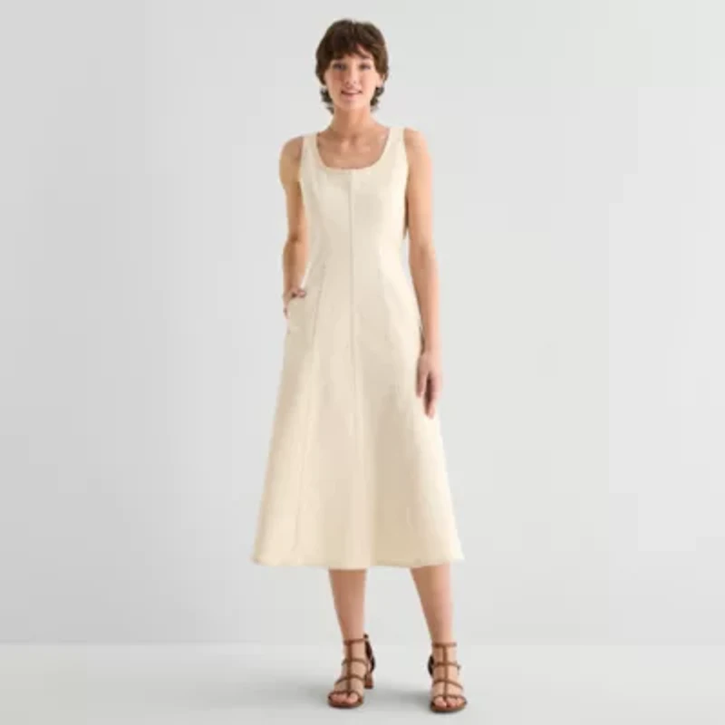a.n.a Womens Sleeveless Midi Fit + Flare Dress