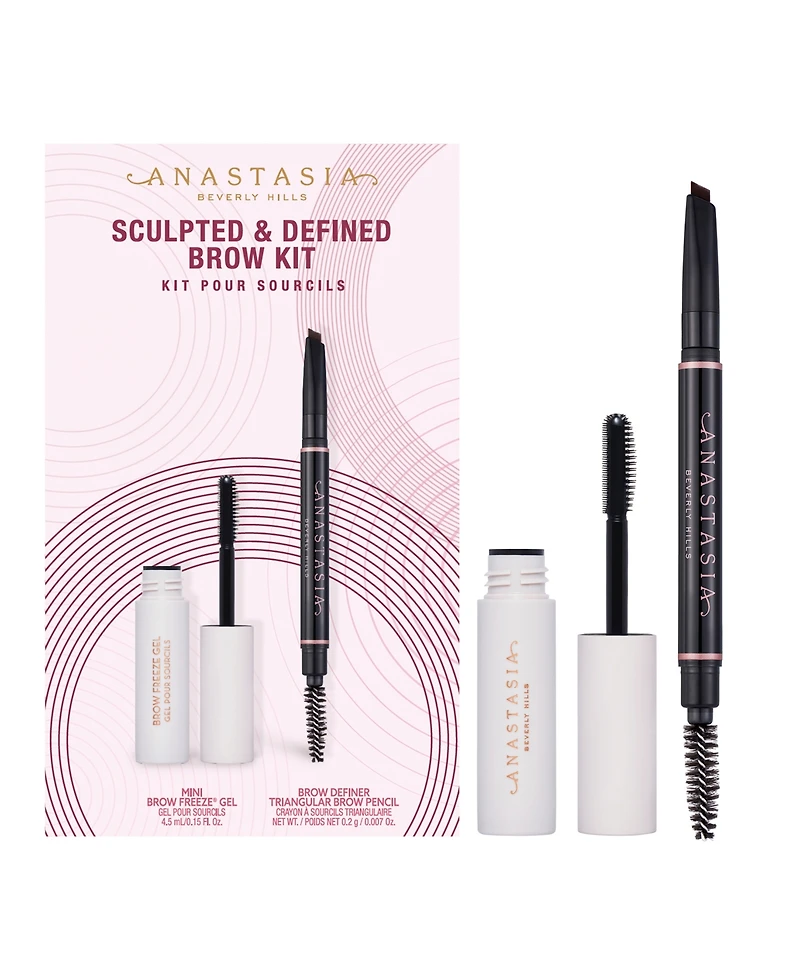 Precision grooming starts with this Anastasia Beverly Hills 2-pc sculpted and defined set, featuring a professional pencil that shapes brows. The freeze gel holds strands in place with long-lasting control, and the travel-friendly size makes it easy to take anywhere.