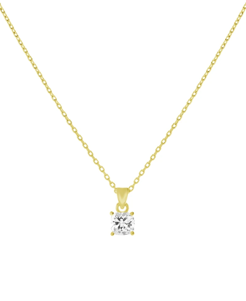 And Now This Cubic Zirconia Solitaire Pendant Necklace, 16" + 2" extender Gold Plate