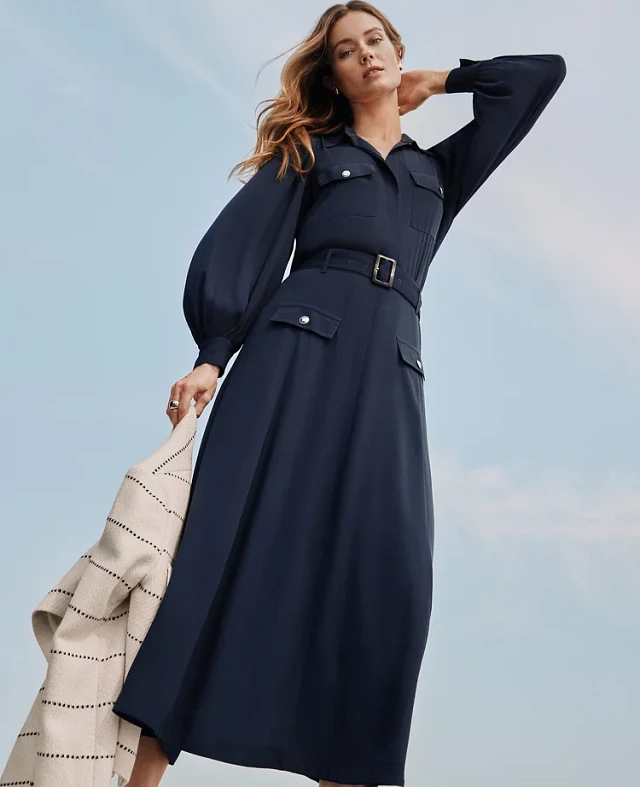 Ann Taylor Layered Belted Sweater Midi Dress Night Sky Women's