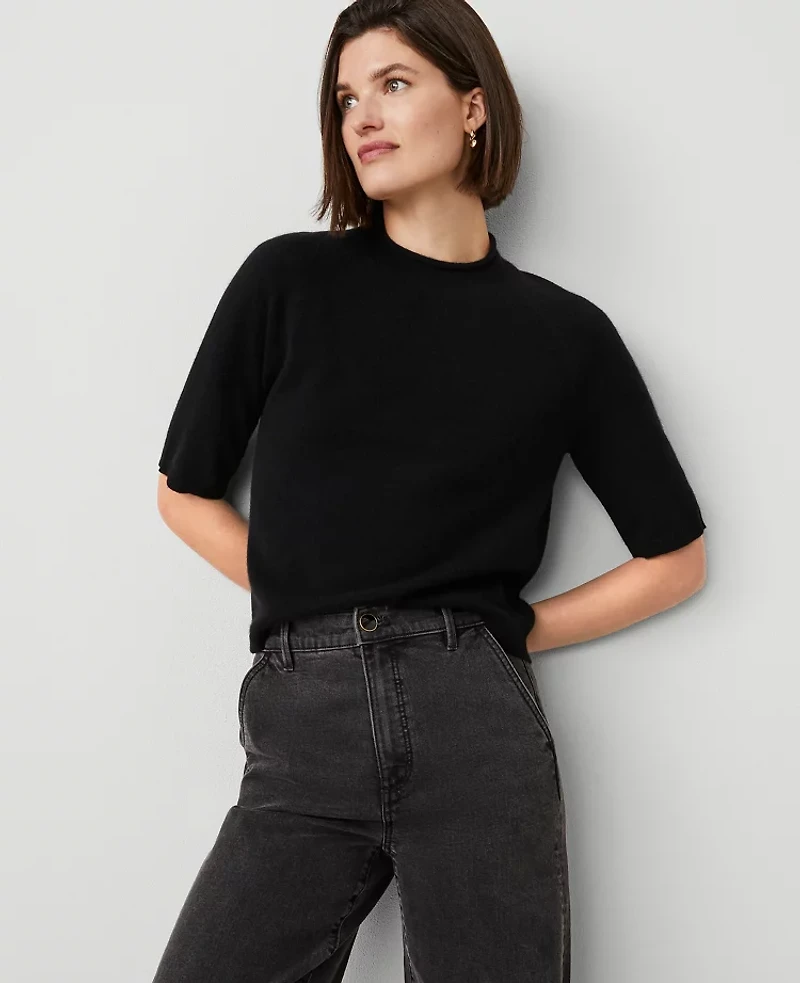 In refined cashmere, our roll neck sweater tee has the perfect relaxed fit to pair with everything in your closet. Roll neck Short sleeves Saddle shoulders Ribbed cuffs and hem., Hit: 21 1/2"long, Imported:, Fit: Softly fitted, Fabrication: 100% Cashmrere, Garment Care: Dry Clean Only Cashmere Roll Neck Sweater Tee by Ann Taylor Size Classic - Medium Black Women's 100%, Cashmere Turtleneck Short Sleeve Tees Sweaters 100% Cashmrere Dry Clean Only