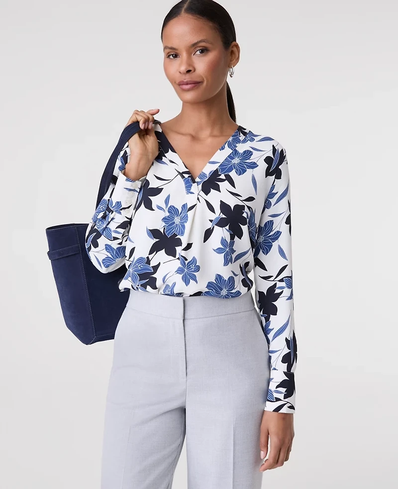 Ann Taylor Floral Pleat Front Top Winter White Women's