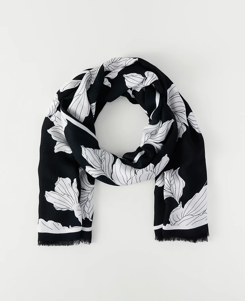 Add a touch of feminine flair with this chic floral scarf. 32"x 72.", Imported:, Fabrication: 100% Modal, Garment Care: Machine Washable Floral Scarf by Ann Taylor Size Classic - One Size Black Women's Scarves, Fashion Accessories 100% Modal Machine Washable