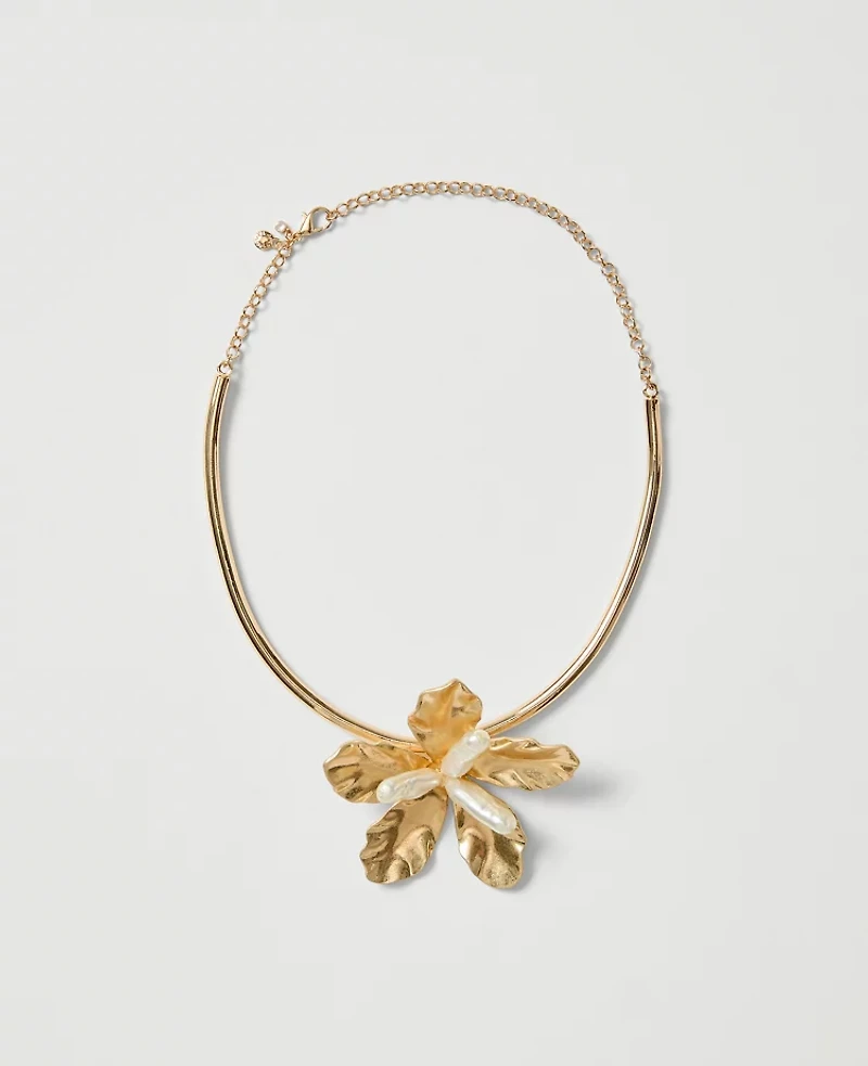 Detailed with lustrous pearl embellishments, this flower cuff necklace is the picture of modern elegance. Lobster clasp fastening., Imported:, Fabrication: N / A, Garment Care: N / A Flower Statement Cuff Necklace by Ann Taylor Size Classic - One Size Goldtone Women's Jewelry, Necklaces Jewelry N / A, N / A