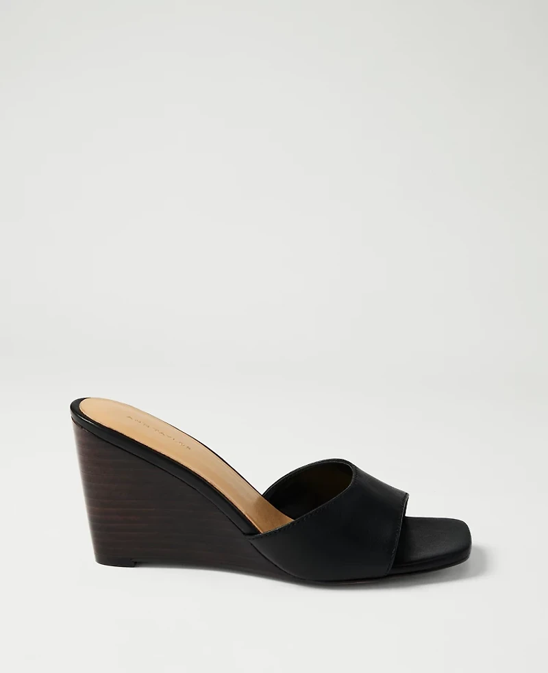 Ann Taylor Leather Wedge Sandal Black Women's