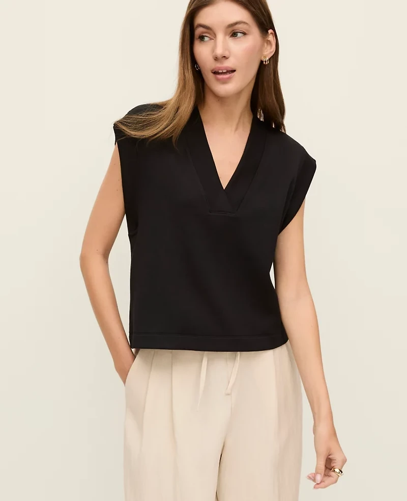 Discover the Weekend Collection. This incredibly soft scuba top makes a chic statement on its own or when worn underneath a jacket. V - neck. Sleeveless, Imported:, Fit: Relaxed fit, Length: 20 3/4"long, Fabrication: 85% Rayon, 9% Polyester, 6% Spandex, Garment Care: Machine Washable Petite Weekend Collection Scuba V - Neck Top by Ann Taylor Size Petite - 2XS Black Women's 100%, Cotton V - Neck, Sleeveless Sweatshirt Tops 85% Rayon 9% Polyester 6% Spandex Machine Washable
