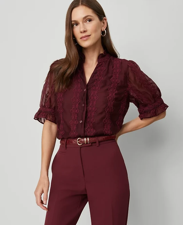 Ann Taylor Ruffle Collar Shirt Poised Plum Women's