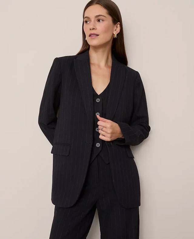 Ann Taylor The Longline Blazer Pinstripe Navy/White Women's