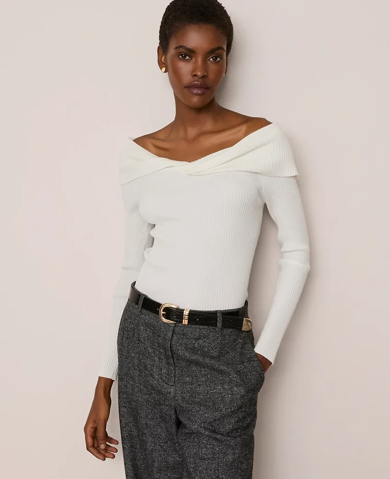 Ann Taylor Twisted Off-The-Shoulder Sweater Winter White Women's