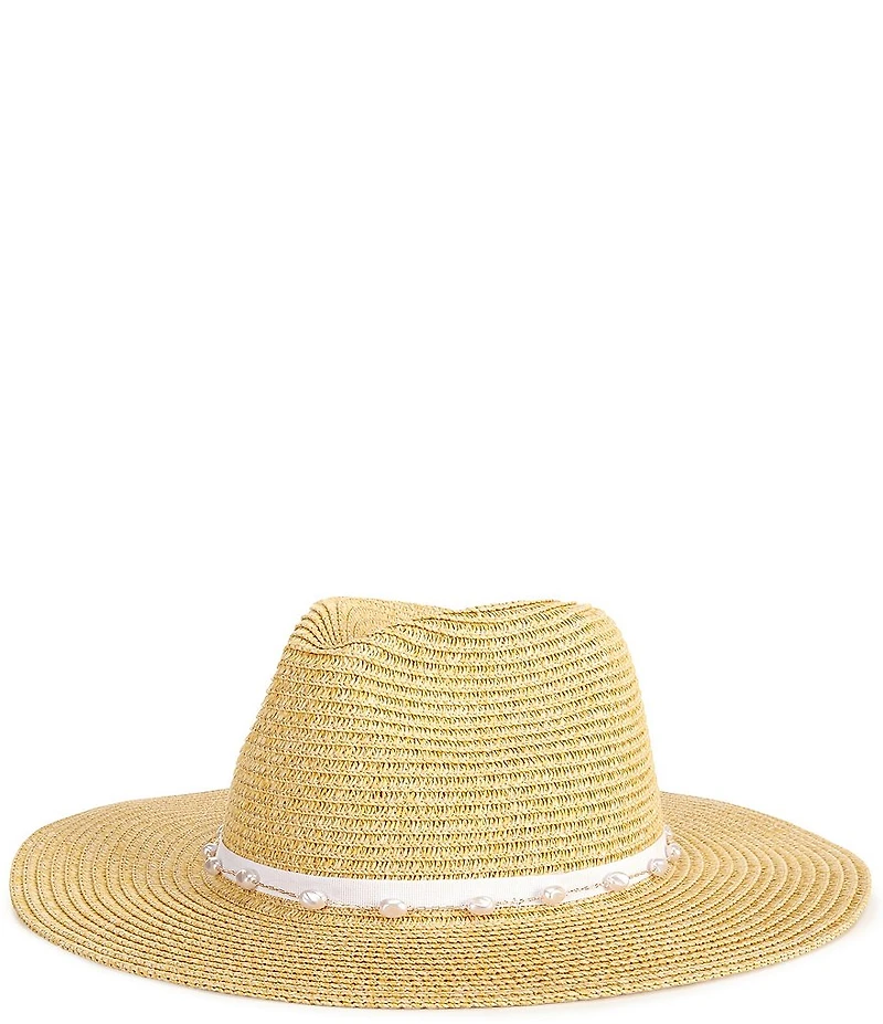From Anna & Ava, this hat features: Fedora hat Paper straw Pearl detail band Approx. 57cm crown Approx. 4" brim Spot clean Imported.