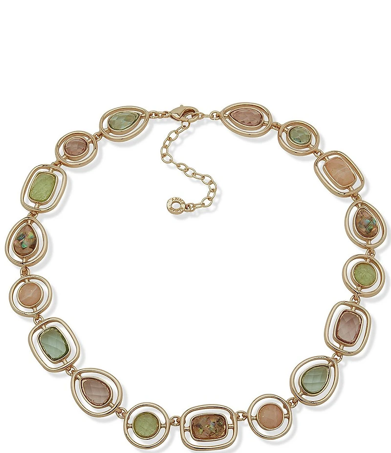 Anne Klein Gold Tone Multiface Stone Collar Necklace