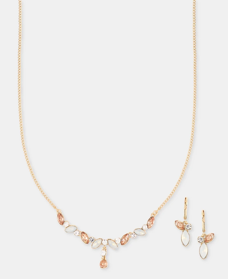 Round and navette-cut stones create the artistic style of this must-have necklace and earrings set from Anne Klein.