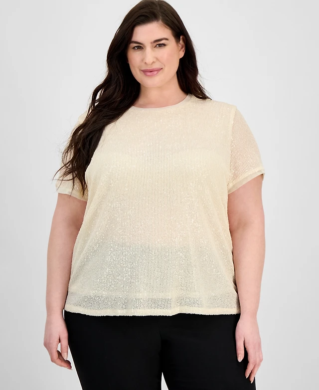 Anne Klein Plus Size Sequin-Embellished Short-Sleeve Top