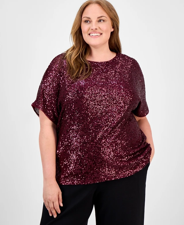 Anne Klein Plus Sequined Dolman-Sleeve Top