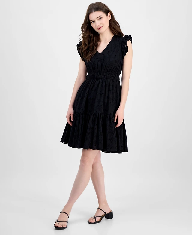 Anne Klein Women's Cotton Eyelet Drawstring-Waist Dress