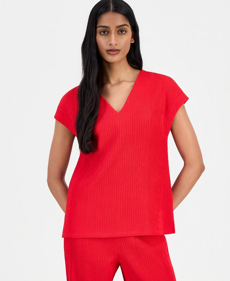 Anne Klein Women's Extended-Shoulder Textured V-Neck Top in Franklin, TN
