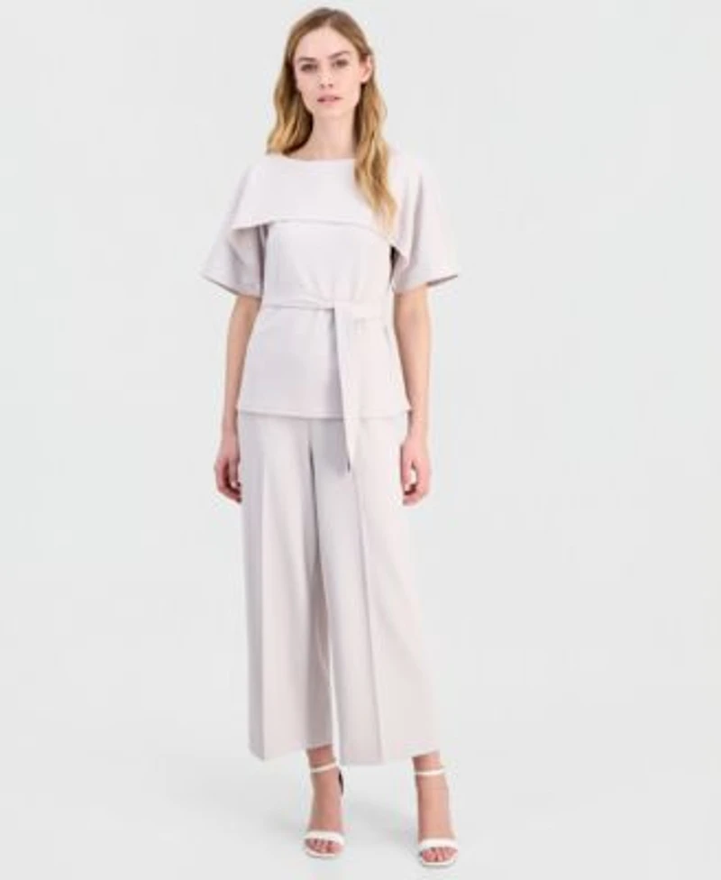 Anne Klein Womens Layered Belted Short Sleeve Top Cropped Wide Leg Pants