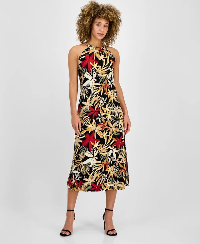 Anne Klein Women's Printed Sleeveless Halter Midi Dress