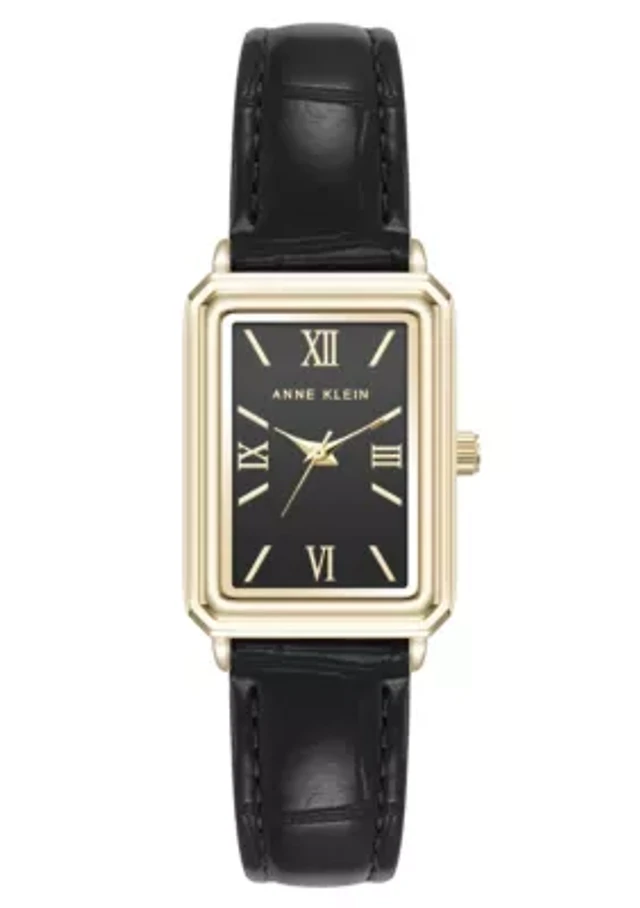Anne Klein Women's Quartz Rectangular Black and Gold-Tone Metal Alloy Watch, 21mm