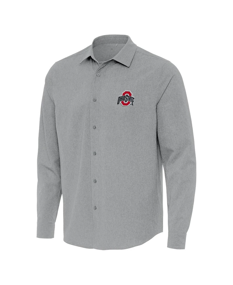 Antigua Men's Gray Ohio State Buckeyes Exposure Woven Long Sleeve Button-Up Shirt