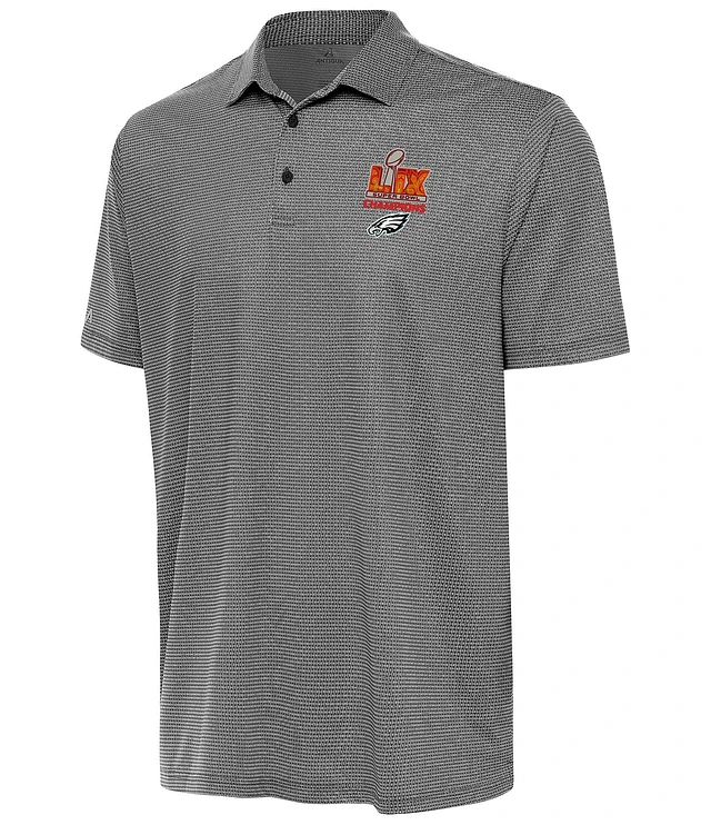 Antigua NFL Philadelphia Eagles Super Bowl 59 Champs Rings Short Sleeve Polo Shirt