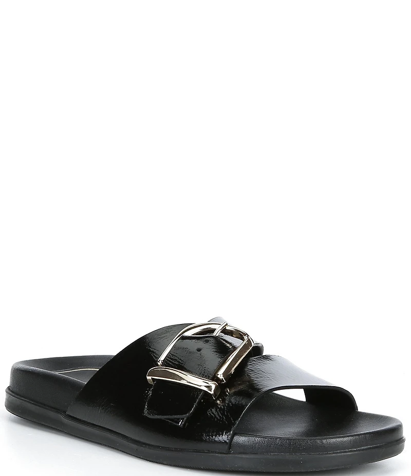 Antonio Melani Adriana Glossy Leather Buckled Flat Sandals