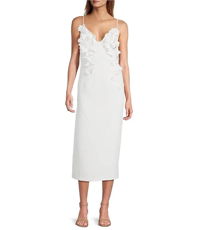 Eliza J 3D Floral Applique V-Neck Sleeveless Sheath Midi Dress