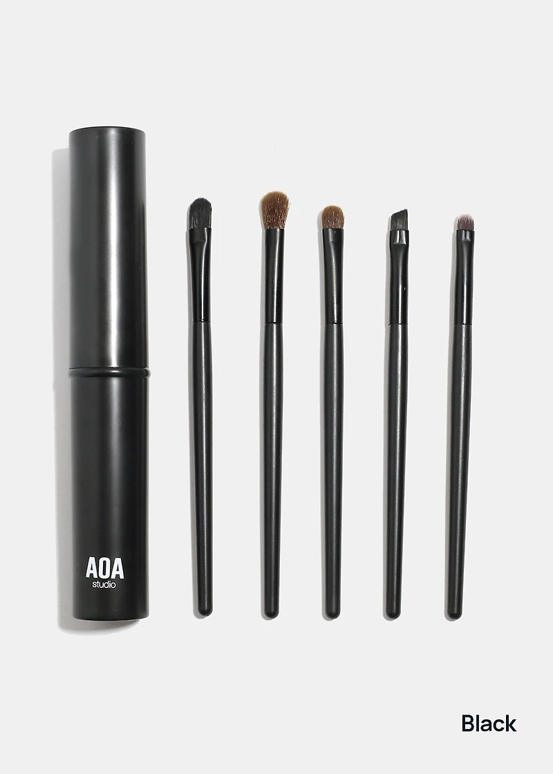 Get flawless eye looks anytime, anywhere with the AOA Travel Brush Set + Case. This compact, 5-piece makeup brush kit includes all the essential eye brushes you need for seamless application, blending, + precision detailing, perfect for travel, your purse, or quick touch-ups on the go. Each brush features soft, high-quality bristles + a sleek, travel-friendly handle for effortless control. The set comes with a durable tube travel case that keeps your brushes clean, protected, +organized wherever you take them. ❣️ Portable ❣️ Travel-friendly ❣️ Time-saving