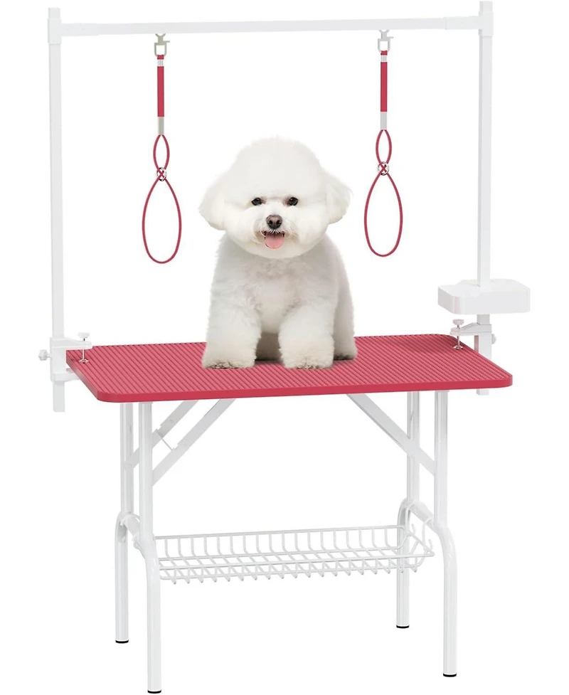 Aostirmotor 36" Large Dog Grooming Table, Foldable Adjustable Pet Station with Arms, Nooses & Mesh Drying Tray, Pink in Franklin, TN