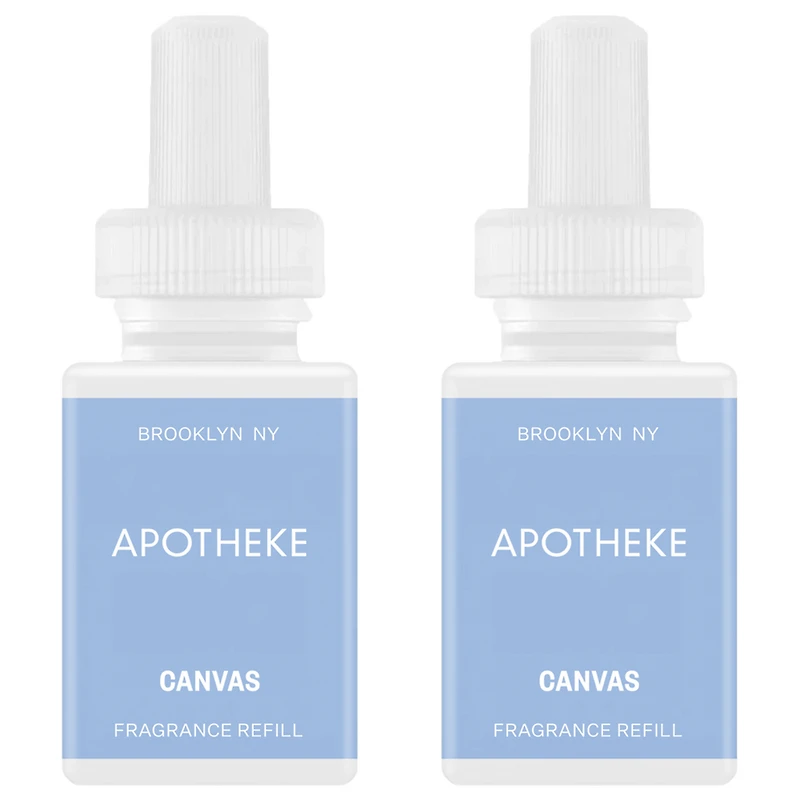 Canvas Pura Smart Scent Fragrance Refill. Features: Includes 2 individually packaged Canvas Pura Smart Scent Fragrance Refill vials.. Canvas combines crisp linen, white musk, and sweet lily of the valley with a sparkling dewdrop accord for a clean and refreshing fragrance.. When used with a Pura 4 Smart Fragrance Diffuser, one Fragrance Refill lasts about 3 weeks in a medium-sized room, diffusing 68 hours per day at medium intensity.. APOTHEKE x Pura scents are created with clean ingredients and are safe for use around children and pets.. Brooklyn-born-and-based, woman-founded-and-owned business.. Inspired by life's simple moments.. Fragrance Family: Floral-Marine / Watery. Key Notes: Top: Fresh-Citrus, Dewdrop Accord, Peach, Greens. Middle: Lily of the Valley, Watery Nuances, Rose, Violet. Bottom: Amber, Musk.