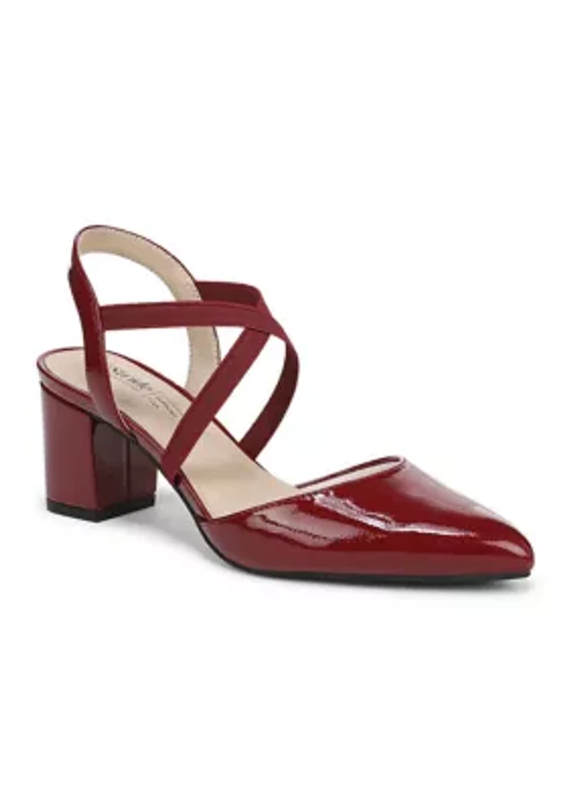 Discover the perfect fit in these timeless and comfortable women’s slingback heels with stretch straps. Faux leather or microfiber upper with a softly pointed toe, slip-on fit with stretch elastic straps, and slingback strap. Linings crafted from partially recycled materials. Soft System® comfort package provides all-day support, flex, and cushioning. Traction sole for extra stability. Just Right Height 2 3/8 inch block heel. Slip-on Padded insole Vietnam Imported Product Specifications 2.375 in. 0.000 W Material polyurethane