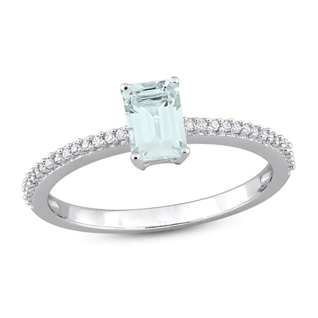Aquamarine & Diamond Ring 1/15 ct tw Emerald/Round-Cut 10K White Gold