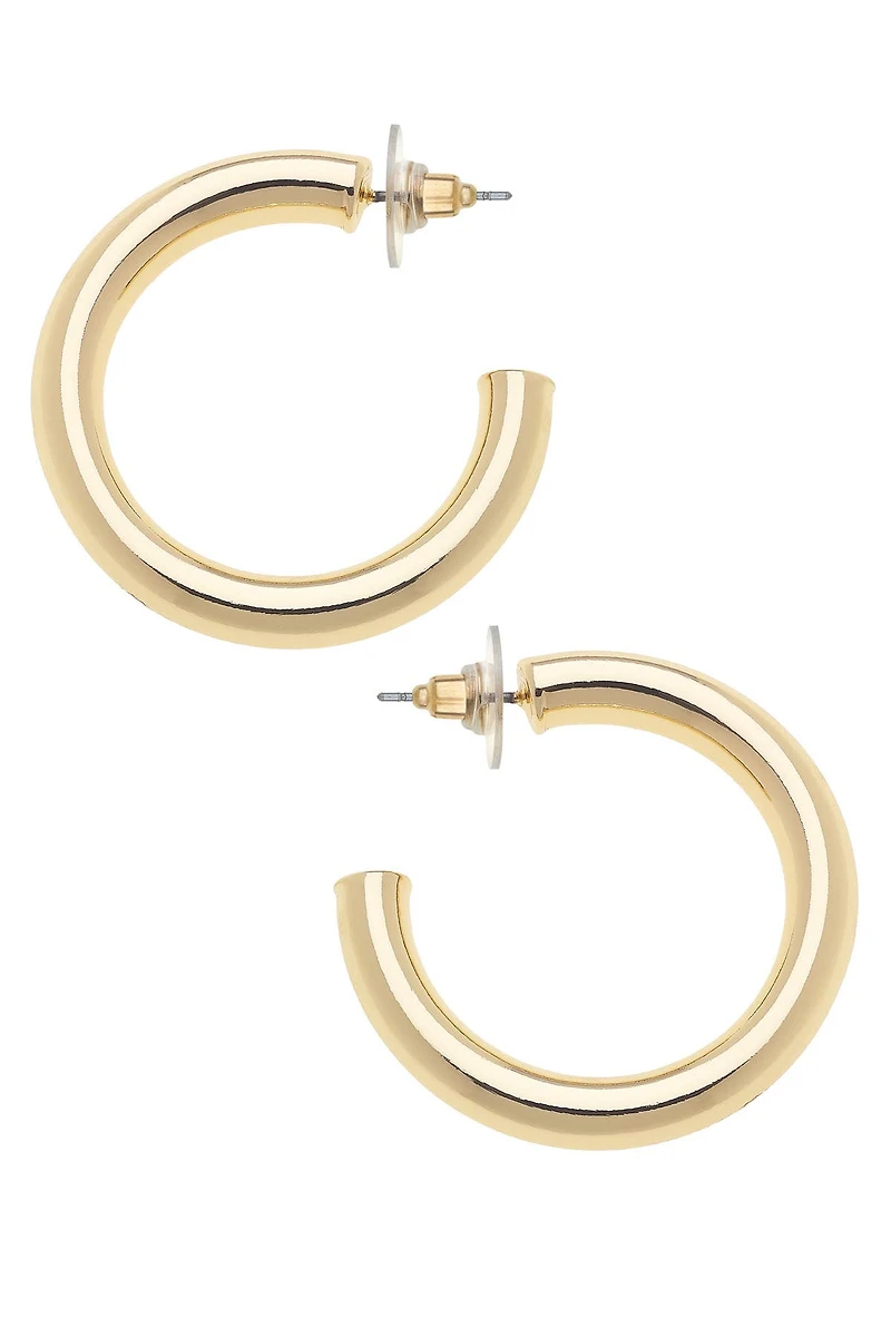 Add a touch of sophistication with the Arabella Hoop Earrings. Featuring a classic hoop silhouette in shiny gold, these earrings are perfect for effortless, everyday glamour. DETAILS Base Metal with Shiny Gold Plating 1.5"L x 1.5"W