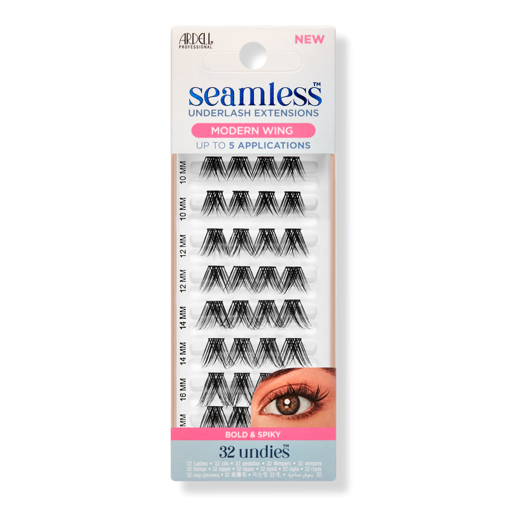 SEAMLESS REFILL - MODERN WING. Features: Modern winged silhouette elongates eyes with a bold and spiky style thats on-point with the trends.. Underlash application conceals the band for a seamlessly undetectable finish. Lifts lashes with a boost from below. Naturally, theyre mine, real lashes. 4 lengths let you customize: 10 mm, 12 mm, 14 mm, 16 mm.. Benefits: Knot-free for seamless blending. Customize duration of wear: get up to 10 days of wear with Duo Underlash Bond & Seal or gentle, 1-day wear with Seamless Underlash Glue & Seal (sold separately). includes:. 32 patented clusters in 4 lengths: 10 mm, 12 mm, 14 mm, 16 mm. Up to 5 applications. :