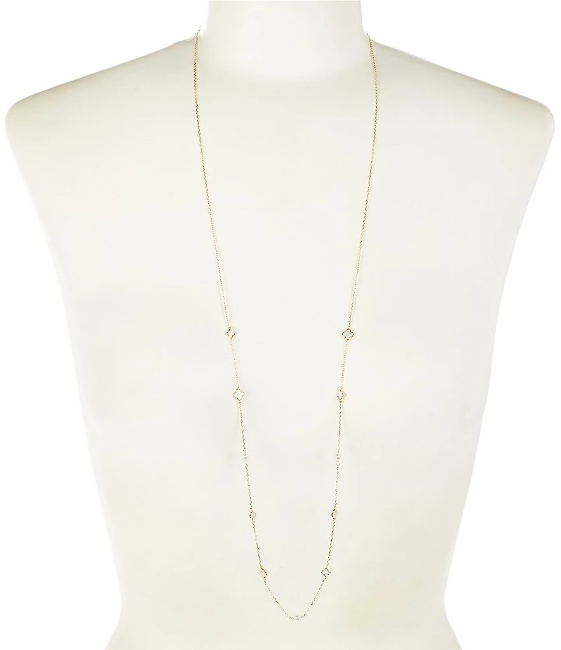 Argento Vivo Clover Mother Of Pearl Station Long Strand Necklace