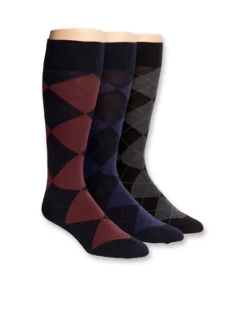 Argyle Cotton Crew Socks - 3 Pack