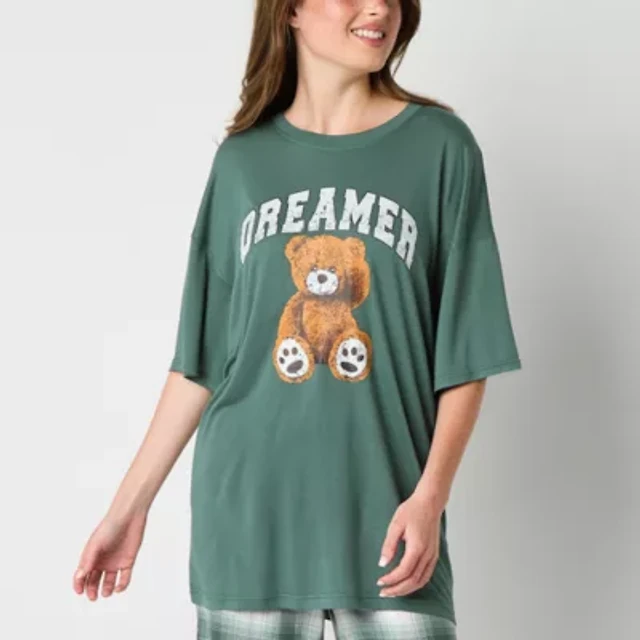 Arizona Body Womens Crew Neck Short Sleeve Juniors Pajama Top