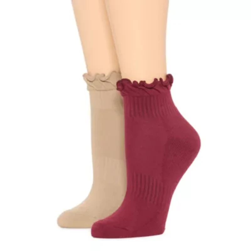 The lettuce-trim of this 2-pair of low-cut women's socks from Arizona Jean Co. look cute shown over the cuff of ankle boots or sneakers. Made from soft stretch-knit, they have cushioned arch support for easy steps.