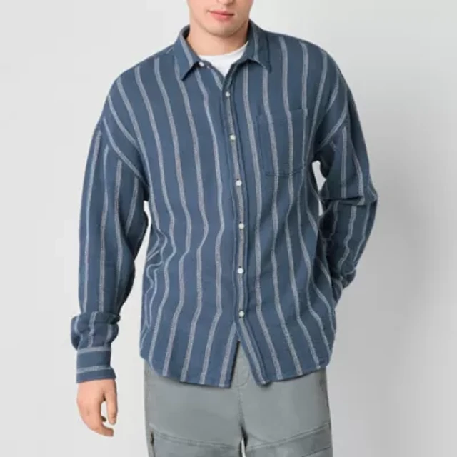 Arizona Mens Long Sleeve Textured Button-Down Shirt