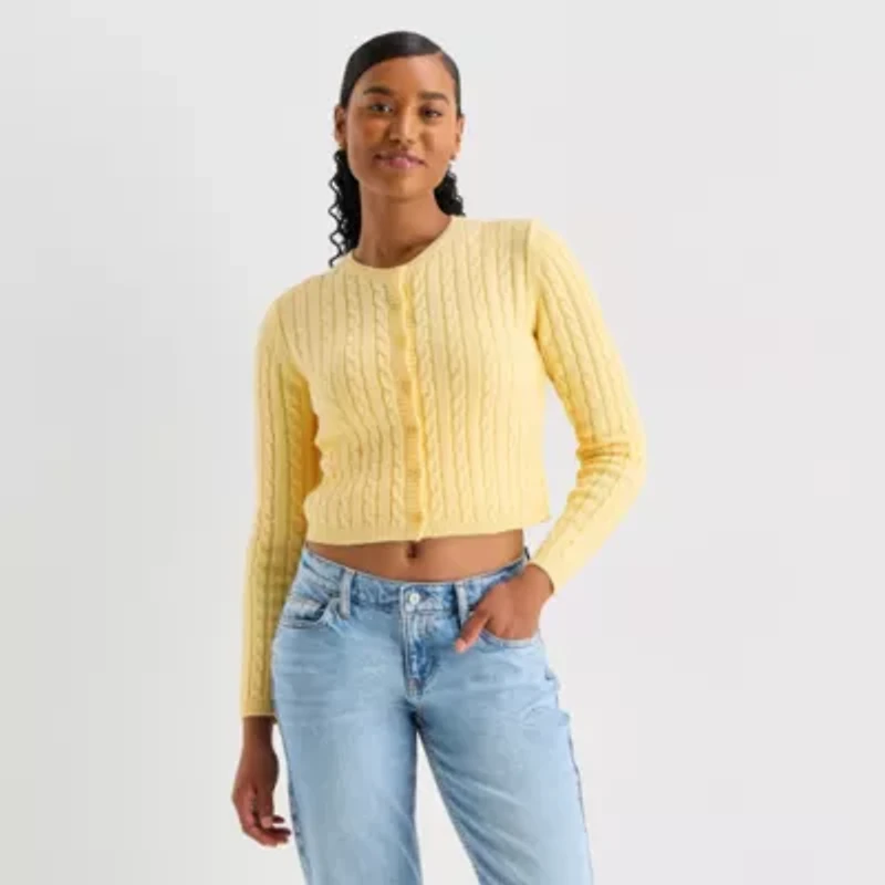 Arizona Womens Crew Neck Long Sleeve Button Juniors Cardigan
