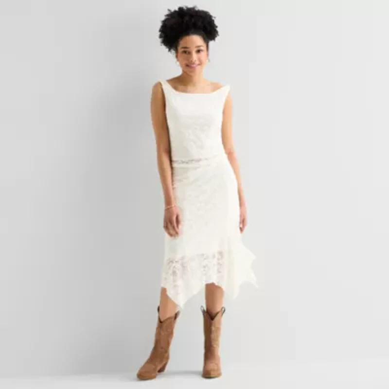 Arizona Womens Juniors Mid Rise Midi Asymmetrical Skirt