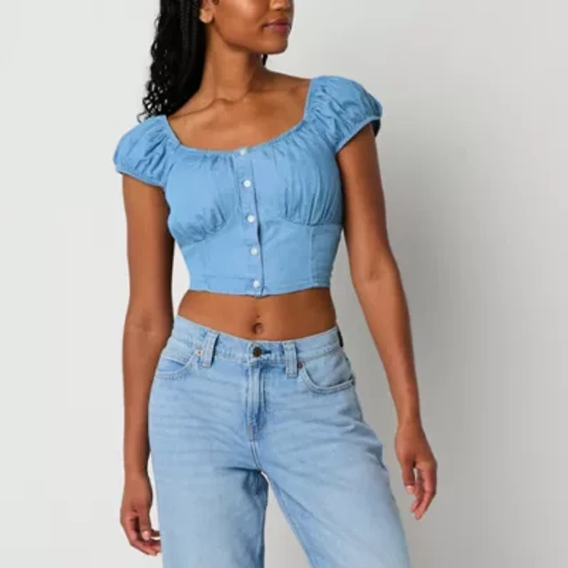 Arizona Womens Juniors Sweetheart Neck Short Sleeve Blouse