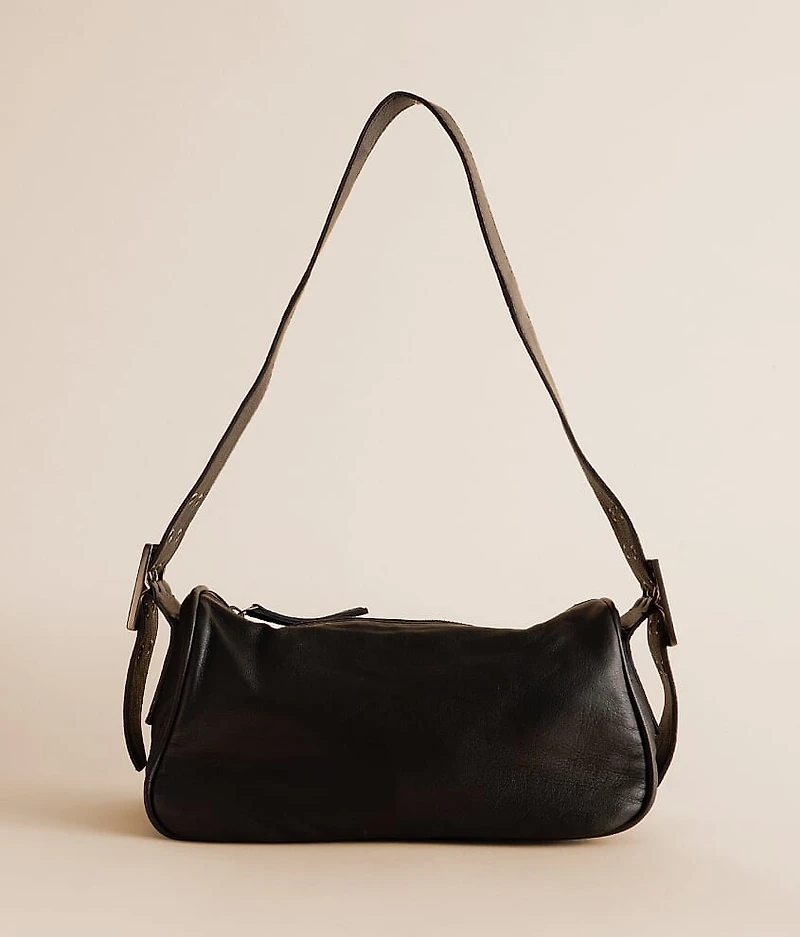 Leather fabric lined purse Zipper closure Interior zipper pocket Adjustable shoulder strap Dimensions: 9"(L) x 5"(W) x 5"(H)
