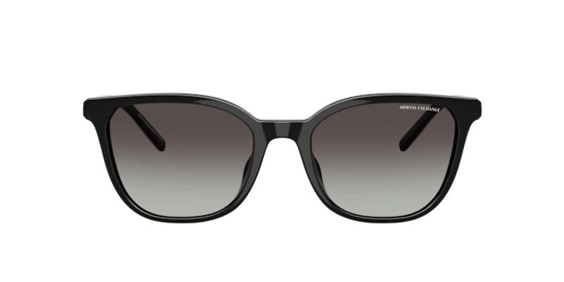 Elevate your look with the armani exchange ax4168su sunglasses. These cat-eye frames blend vintage-inspired curves with a modern twist. Crafted from partly bio-based plastic, the black front exudes timeless sophistication. These black sunglasses feature gradient grey lenses that add a stylish touch, while the injected temples ensure lightweight comfort. Adorned with updated a. X logo metal plaque detailing, these full-rim frames are a chic, versatile choice.