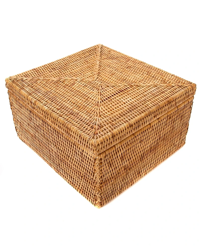 Artifacts Trading Company Rattan Storage Box with Lid - Flat File Organizer