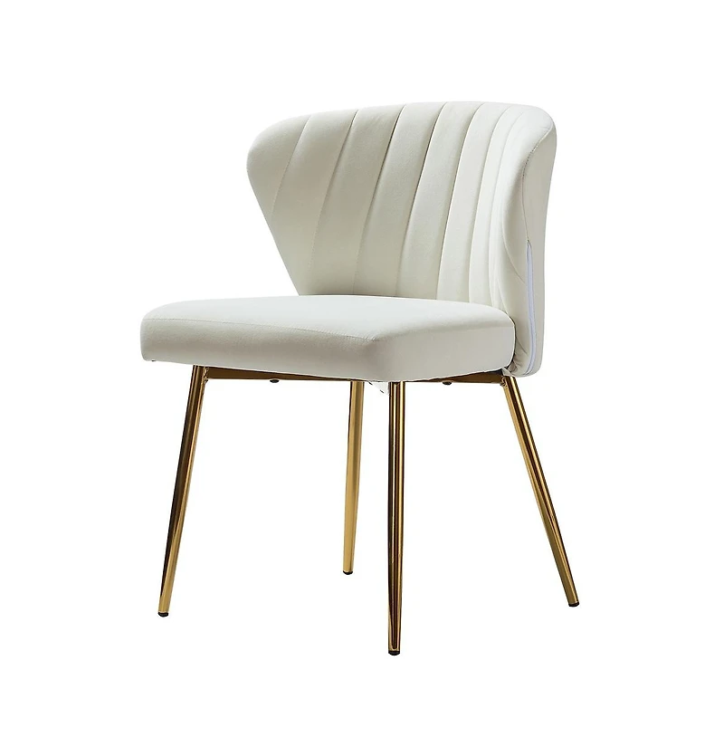 This side chair brings the perfect lines to your bedroom or living space. This stylish side chair has a channel-tufted back that wraps around a foam-filled cushion. The whole chair is upholstered in velvet which is durable and resilient to everyday use adding to the timeless and long-lasting fashion of this chair. The four metal legs with a full sense of design while not only bringing fashion and luxury to your home but also improving stability and durability. This is the best choice for your decorating a room or gifting to families and friends.