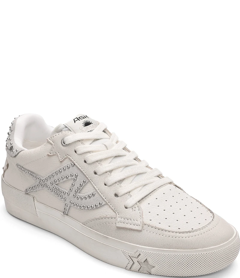 From ASH, the Moonlight Studded Leather Platform Sneakers feature: Leather and textile upper Stud details Lace up closure Fabric lining Memory foam cushioning Rubber outsole Approx. 1.18" platform height Imported.