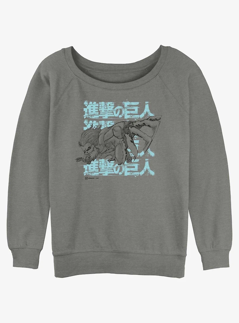 Attack On Titan Jaw Titan Stack Girls Slouchy Sweatshirt