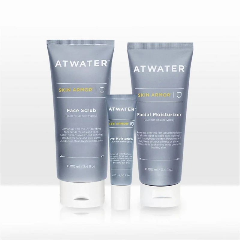 Combination Starter Set. Features: Skin Armor Face Scrub: Gentle Cleanser. Exfoliates. Made for All Skin Types. Dissolves Clog Build Up and Impurities. Salicylic Acid. Skin Brightening. Non-Irritating Formula. Fragrance Free. Dermatologist Tested. Made in USA. Skin Armor Facial Moisturizer: Fast Absorbing Moisturizer. Suitable for All Skin Types. Award-Winning Formula. Hydration. Brightening. Lightweight Formula. Eye Armor Eye Moisturizer: Award-Winning Formula. Helps to revive tired looking eyes. Diminishes Fine Lines and Wrinkles. Reduces Dark Circles. Helps Depuffs and Tightens Under Eye Area. Brightens the Look of Dark Circles. Firming and Nourishing Eye Cream. Ophthalmologist tested for safety and gentleness. Key Ingredients: Skin Armor Face Scrub: Jojoba Beads: Mild, plant-derived spheres made from Jojoba Oil gently exfoliate skin surface of dead cells that can clog pores.. Salicylic Acid: Efficient, oil-soluble beta hydroxy acid (BHA) with exfoliating and anti-acne properties that helps to clear clogged pores that can lead to acne breakouts and blackheads.. Chlorophyllin Copper Complex: A semi-synthetic, naturally derived compound from chlorophyll that has anti-inflammatory, antioxidant and wound-healing properties.. Skin Armor Facial Molisturizer:5% Niacinamide: A highly effective antioxidant, multi-benefit Vitamin B3 helps brighten skin, strengthen skin barrier defenses and control excess sebum production.. Tucuma Seed Butter: Emillient plant oil rich in antioxidant polyphenols that softens and moisturizes the skin, helping prevent dryness and dehydration.. Licorice Root Extract: Superb antioxidant botanical extract that brightens skin and helps defend against environmental skin aging.. Eye Armor Eye Moisturizer: Niacinamide: A highly effective antioxidant, multi-benefit Vitamin B3 helps brighten skin and strengthen skin barrier defenses.. Caffeine: Naturally derived from coffee beans, a potent antioxidant extract with constricting properties that helps depuff skin around the eyes and prevent environmental skin aging.. Yeast and Rice Extracts: Soothing natural extracts that help to nourish and firm the skin for a plump, healthy-looking appearance.. Formulated Without: Parabens, Phthalates, Formaldehydes, Sulfates..